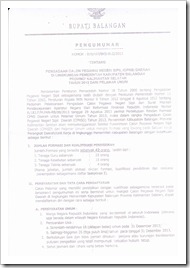 Bagi yang berada di luar daerah dan berminat menjadi PNS di lingkungan Pemkab Balangan bisa mendownload pengumumannya di bawah posting ini.